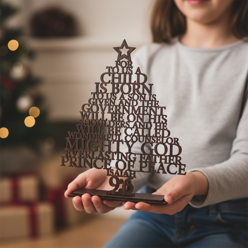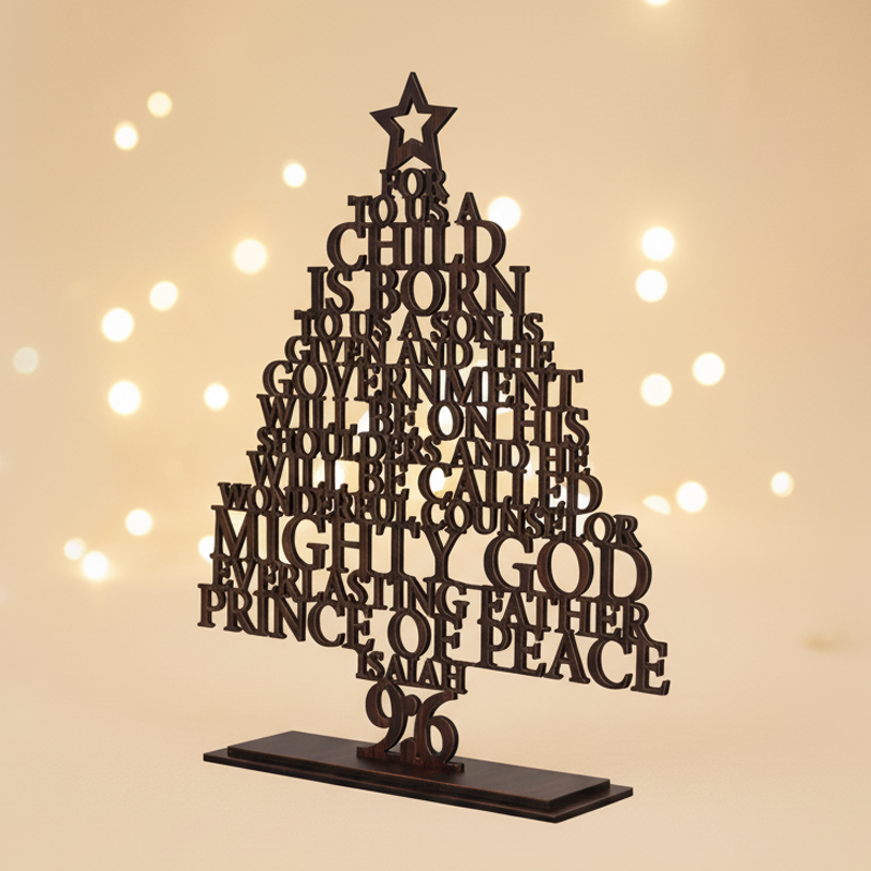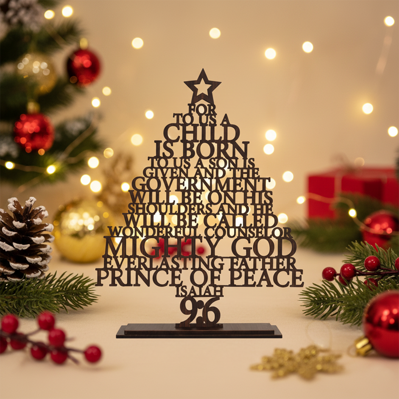 Christmas Tree is made of MDF wood and wood, 100% eco-friendly material, non-toxic, non-pollution. This Christmas home decor Tree is very unique, which makes it the most beautiful and super quality wooden Christmas tree. It can be a nice gift to your family, friends and relatives, also can be a nice decoration for your Christmas tree at home. This Wooden Bible Quote Christmas Tree is only a table-top x mas tree, but with super fine quality, which make it rank as the best Christmas trees for home. We make this Christmas Tree with super fine quality laser cutting machine, so that it is super fine quality, high strength and durable. It is a nice ornaments for your christmas gifts or Christmas party.