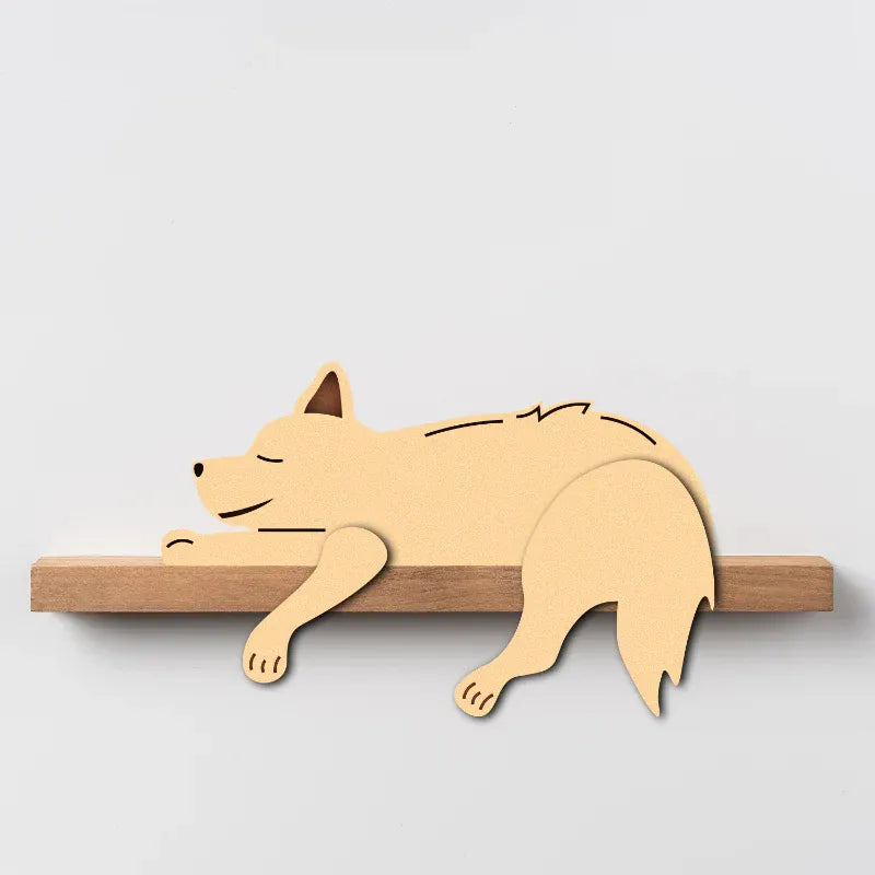 Add charm and function to your walls with this handcrafted wooden dog shelf. Perfect decorative wall shelves for bedrooms, nurseries, or living rooms—combining whimsical design with practical storage.