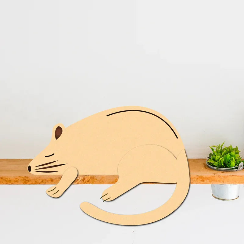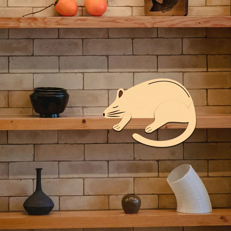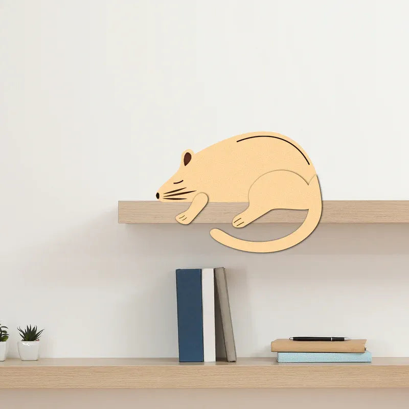 The relaxed mouse form naturally follows the line of a shelf, creating a gentle visual flow rather than a sharp focal point. Made from quality wood with a smooth finish, this wooden home decor accent feels warm and organic, blending effortlessly with books, plants, ceramics, and neutral interiors.
