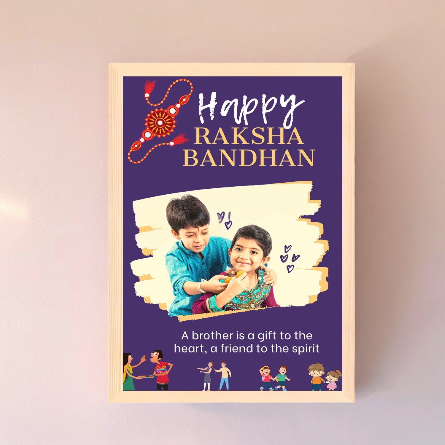 Make this Raksha Bandhan memorable with our Charming Bro & Sis Wooden Frame. Crafted from high-quality wood, this exquisite frame celebrates the special relationship between brothers and sisters. Its charming design and superior craftsmanship make it a beautiful addition to any space, perfect for showcasing a cherished photo of your Rakhi celebrations together.