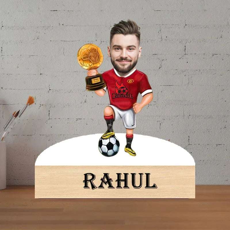 Perfect for display in a living room, office, or trophy cabinet, this personalized wooden caricature combines artistry with sentiment, creating a memorable and cherished keepsake that will be treasured for years to come. Celebrate the spirit of football with a gift that is as unique and special as the player it represents.