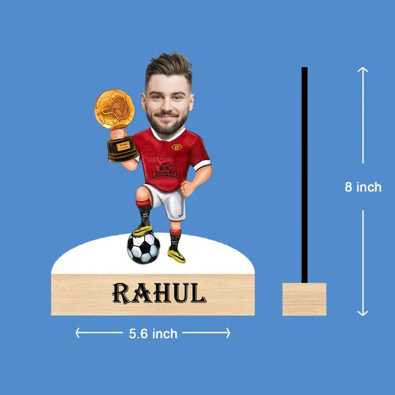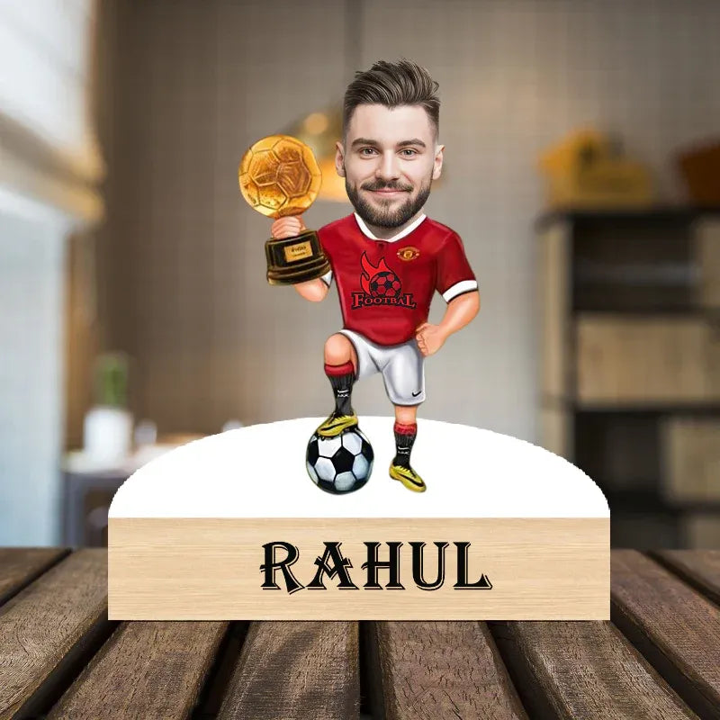 Each caricature is hand-carved from premium-quality wood, ensuring that every detail, from the player's iconic uniform to their expressive features, is brought to life with precision. The natural grain of the wood adds a warm, timeless touch, making this piece a standout addition to any football lover's collection.