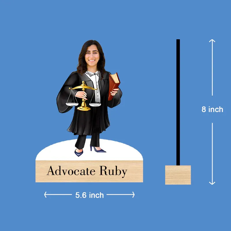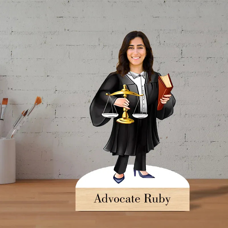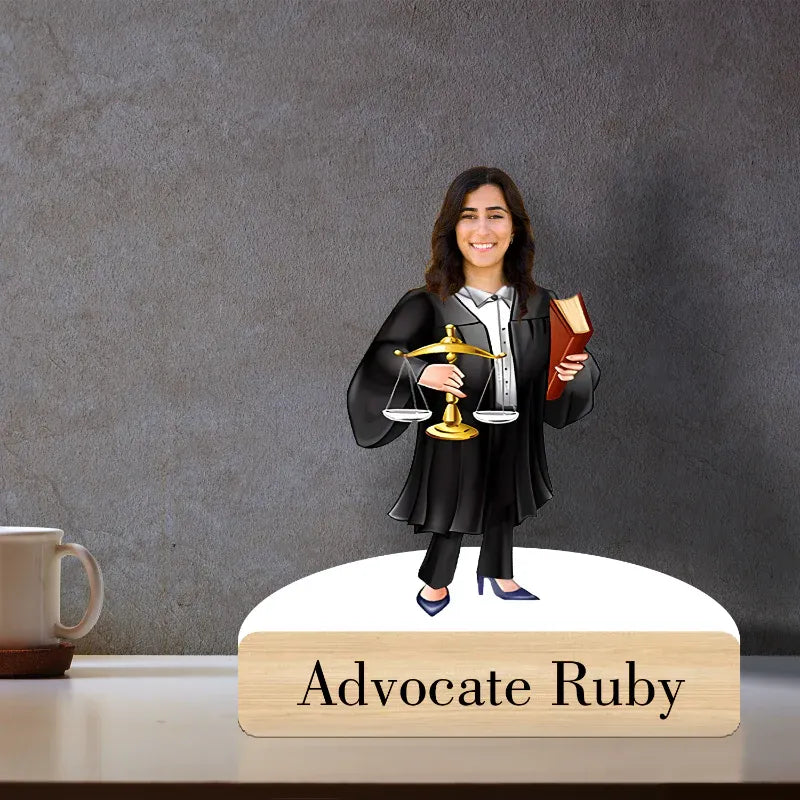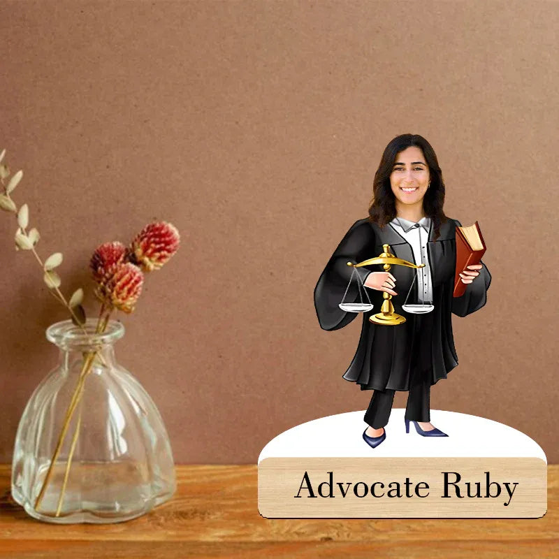 Whether you're gifting it to a friend, colleague, or celebrating your own success in the legal field, this personalized lawyer caricature on a wooden stand is a one-of-a-kind piece that blends professionalism with creativity, making it a cherished memento for years to come. Let this caricature capture the essence of the legal spirit while adding a touch of personal charm to any space."