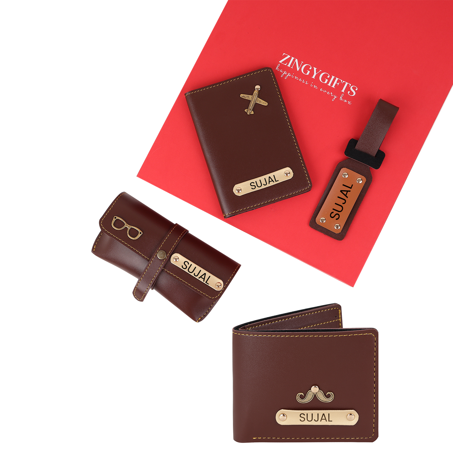 Travel in style and sophistication with our Deluxe Personalized Travel Kit for Men. This premium hamper is thoughtfully curated to include everything a man needs for a seamless travel experience. Combining functionality and elegance, each item in this kit is crafted with precision and personalized to perfection.